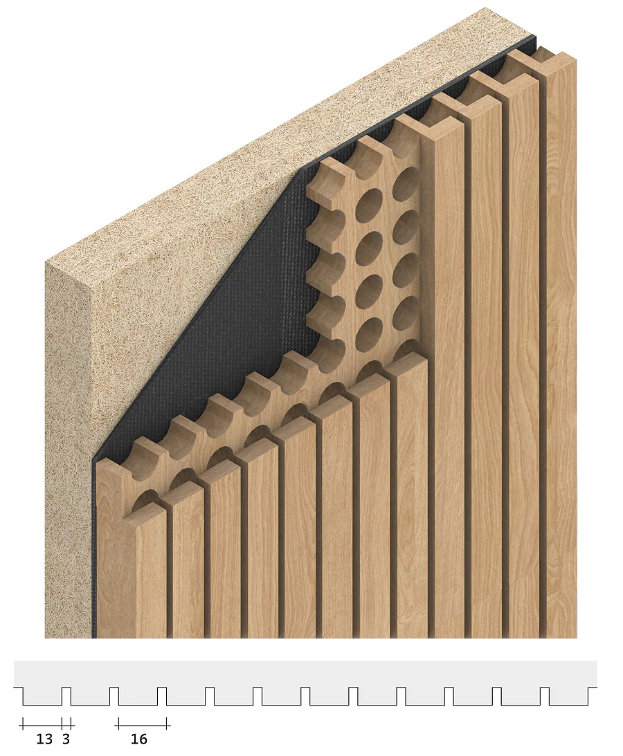 Poseidon Acoustic Panel Διαστάσεις 2,95Χ0,28 & 2,44X0,28 MDF Καπλαμάς Δρύς 17mm πάχους,