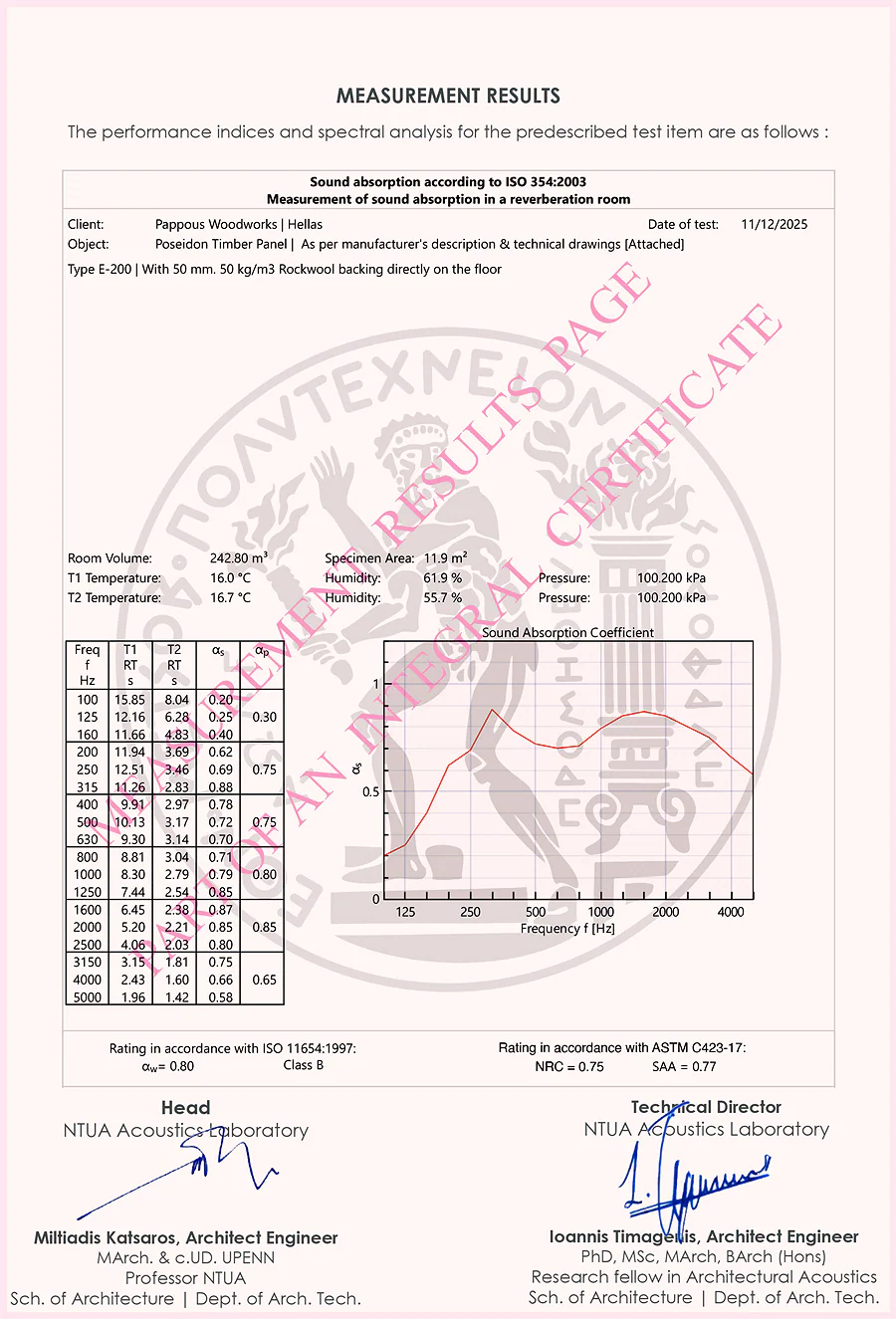 - Πιστοποίηση από το Εθνικό Μετσόβιο Πολυτεχνείο (Certificate of acoustic performance).